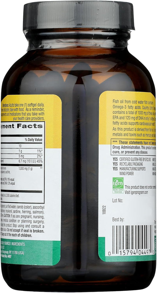 100 CT Country Life Omega 3 Fish Oil Capsules - 1000 MG Omega-3 Supplement for Heart Health and Brain Function