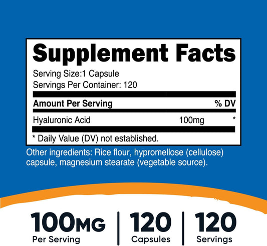 120 Vegetarian Capsules of Nutricost Hyaluronic Acid 100mg - Gluten Free, Non-GMO Supplement