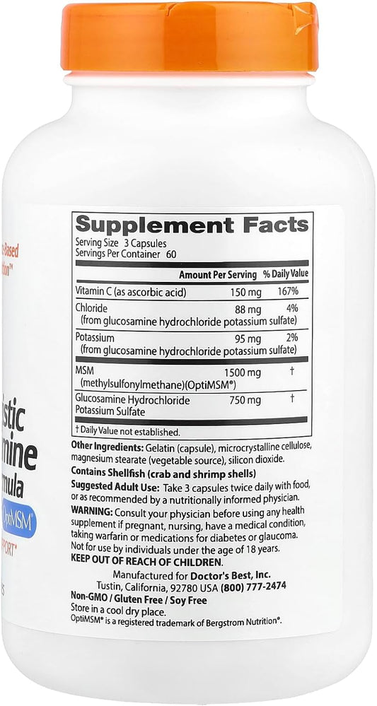 Doctors Best Synergistic Glucosamine MSM Formula for Joint Support - Non-GMO, Gluten Free, Soy Free - 180 Capsules