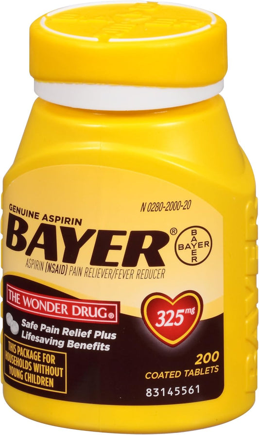 Bayer Aspirin 325mg Coated Tablets, 200 Count - Pain Reliever with Lifesaving Benefits