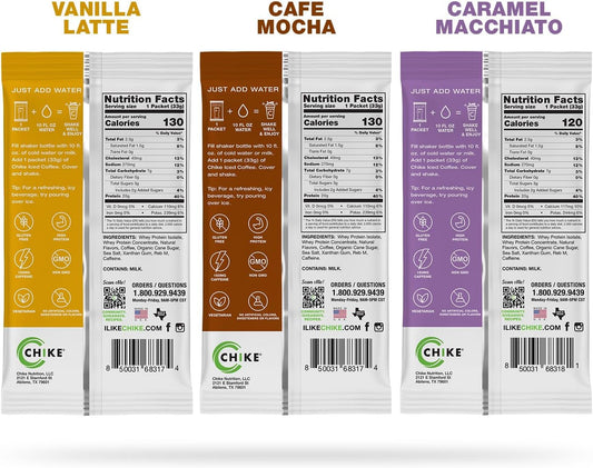 Chike High Protein Iced Coffee Sampler Pack - 6 Single Serve Packets, 20g Protein, 2 Shots Espresso, Non-GMO, Keto & Gluten Free