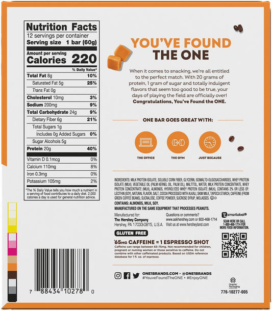 Caramel Macchiato Coffee Shop Protein Bars with Caffeine - Gluten Free, 20g Protein, 1g Sugar - 12 Count Pack for High Diet Snacking
