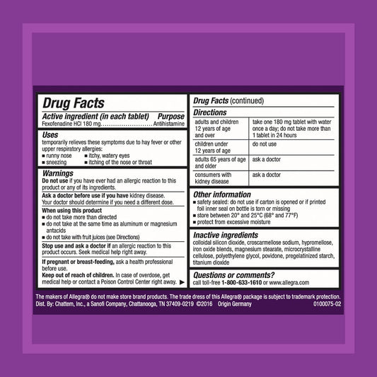 Allegra Adult 24HR Non-Drowsy Antihistamine Tablets - Fast-Acting Allergy Relief - 30 Count - 180 mg