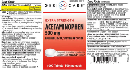 Extra Strength Acetaminophen 500mg Tablets for Pain Relief & Fever Reducer - 1000 Count Pack - Joint, Muscle, Arthritis, Back Pain Relief