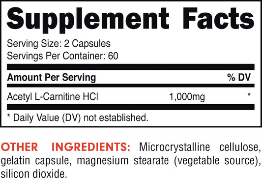 High-Potency Bucked Up Acetyl L-Carnitine Capsules - 1000mg Per Serving - Brain Function Support - 60 Servings
