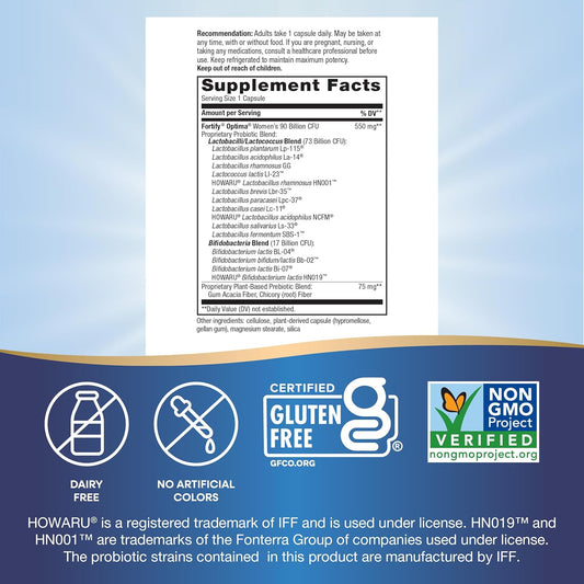 Fortify Optima Probiotic for Women - 90 Billion Live Cultures, Supports Vaginal & Digestive Health - 30 Capsules
