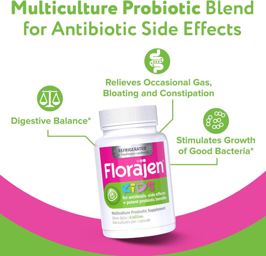 Florajen Kids Probiotics: Daily Gut Health & Immune Support, 30 Capsules (Refrigerated) - Relief for Constipation and Bloating