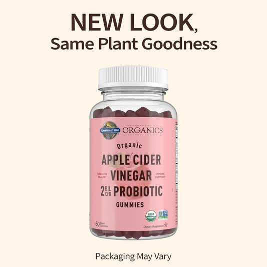 Organic Apple Cider Vinegar Probiotic Gummies with Vitamin B12 - Vegan & Non-GMO Digestion Support - 60 Gummies, 2 Billion CFUs