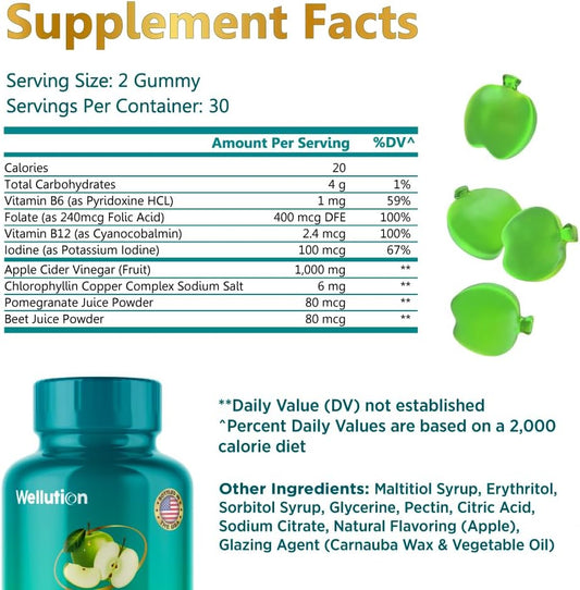 Apple Flavored WELLUTION XXL Keto ACV Gummies - 1,000mg, 60 Count, Sugar-Free, Digestion & Detox Aid, Metabolism Boost, Weight Loss Support for Men & Women