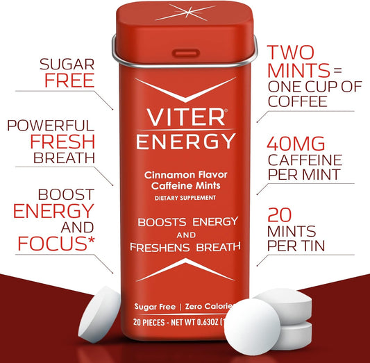 Bundle of 6 Viter Energy Caffeine Mints Cinnamon Flavor and 1/2 Pound Bulk Bag - 40mg Caffeine, B Vitamins, Sugar-Free, Vegan, Energy Booster for Focus and Alertness