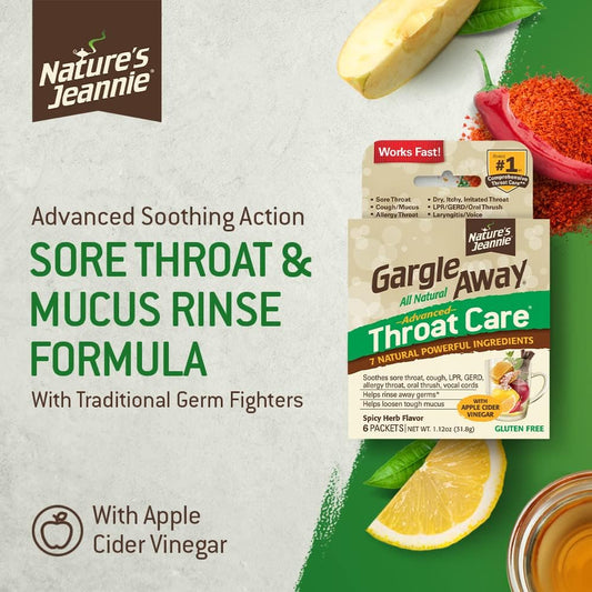 All-Natural Throat Care by Nature's Jeannie - Soothes Sore Throat, Tough Mucus, Persistent Cough, Oral Thrush - Spicy Herb Flavor - 40 Packets
