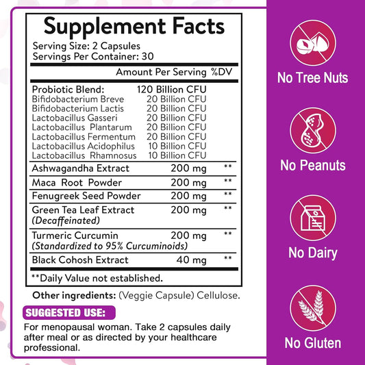 All-Natural Menopause Probiotic Supplements for Women - 480 Capsules, 120 Billion CFU, Herbal Formula