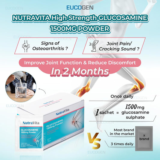 NutraVita Glucosamine Powder 1500mg - Joint Support Supplement for Back, Knees & Joints. Convenient Once-Daily Sachet Pack