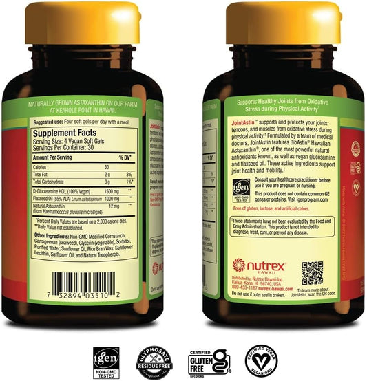 Nutrex Hawaii JointAstin 12mg Softgels - Glucosamine & BioAstin Astaxanthin Supplement for Joint, Eye, Skin & Immune Health - 120ct