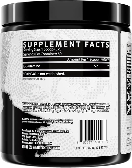 Nutrex Research L-Glutamine Powder - 300g Pure Unflavored Supplement, 60 Servings
