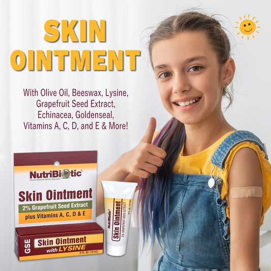 NutriBiotic Skin Ointment .5 Fl Oz with GSE, Lysine, Beeswax, Echinacea, Goldenseal, Vitamin E for Minor Skin Irritations | Supports Healthy Tissue | Gluten & GMO-Free