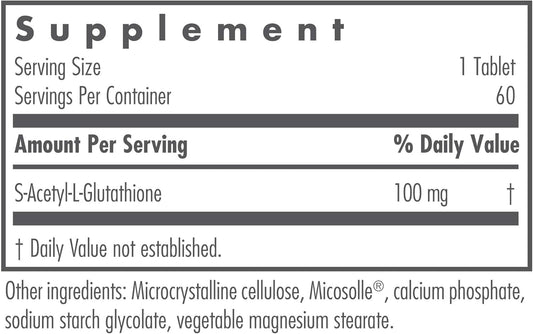 Nutricology Acetyl-Glutathione 100mg - Oral S-Acetyl-L-Glutathione Supplement for Immune Support - 60 Capsules