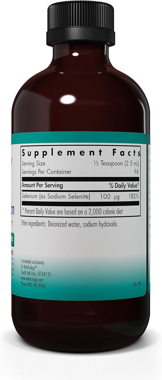 Nutricology Selenium Solution 100mcg Liquid Supplement for Thyroid Support & Antioxidants - Pure Sodium Selenite, Well-Absorbed, Hypoallergenic - 8 Fl Oz
