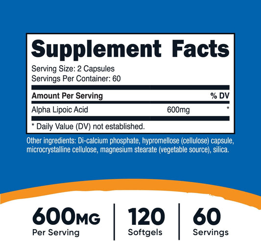 Nutricost Alpha Lipoic Acid 600mg 120 Capsules - Plant Based, Non-GMO Formula for 60 Servings