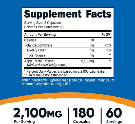 Nutricost Apple Pectin Capsules - 2,100mg Per Serving, 180 Capsules - Gluten-Free - 60 Servings - High-Quality Apple Fiber Supplement