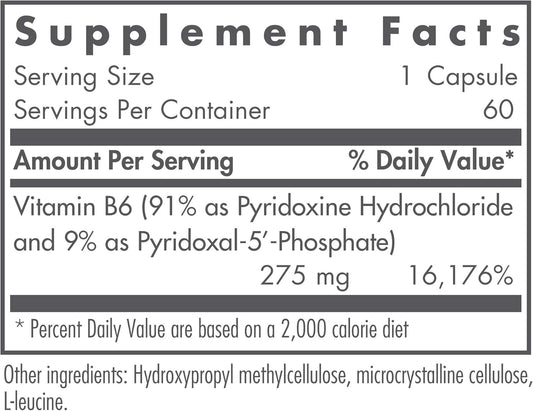 Nutricology Pyridoxine P5P (B-6) Vegicaps - 60 Count - High-Quality Vitamin B6 Supplement