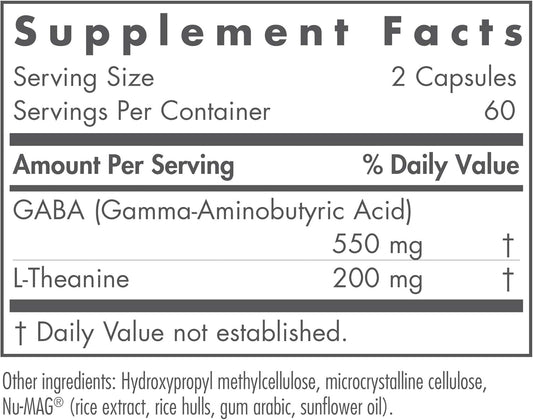 Nutricology ZenMind Supplement - Natural Calmness Support with GABA and L-Theanine - 120 Vegetarian Capsules for Day or Night Relaxation
