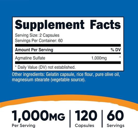 Nutricost Agmatine Sulfate Capsules - 120 Count, 1000mg, Gluten Free, Non GMO - 500mg Per Capsule