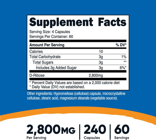Nutricost D-Ribose 700mg Capsules - 240 Count, Vegetarian-Friendly, Non-GMO, Gluten-Free - 2800mg Per Serving