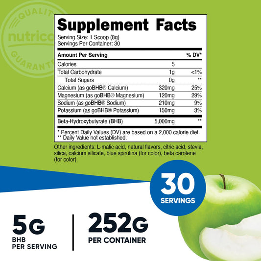 Nutricost BHB Salts Drink Mix - Green Apple Flavored (30 Servings, 5G BHB Per Serving, 0G Sugars) - Vegetarian Friendly