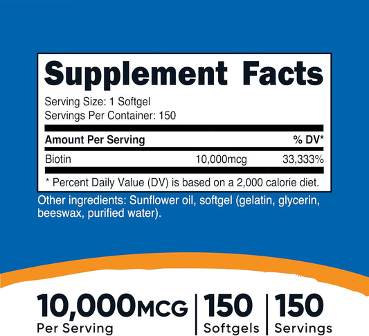 Nutricost Biotin Softgels 10,000mcg - 150 Count, Gluten Free, Non-GMO Formula