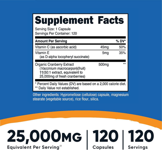 Nutricost Cranberry Extract 25,000mg - 3 Bottles (120 Servings) with Added Vitamin C & E for Immune Support
