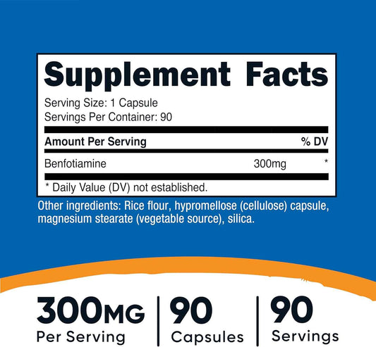 Nutricost Benfotiamine 300mg, 90 Capsules - Gluten Free, Non-GMO, and Vegetarian Friendly Fat Soluble Vitamin B1