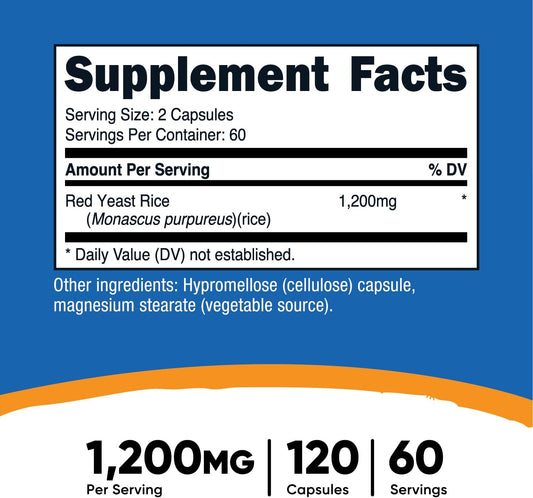Nutricost Red Yeast Rice 1200mg Capsules - 120 Count, Non-GMO, Gluten Free, Vegetarian Capsules - 60 Servings