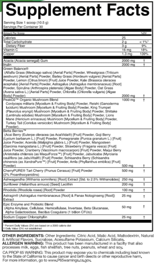 NutriFitt Epic Greens Blend - Antioxidants, Fruits, Veggies, Mushrooms - Performance Boost & Recovery - 30 Servings, Summer Berry Tea