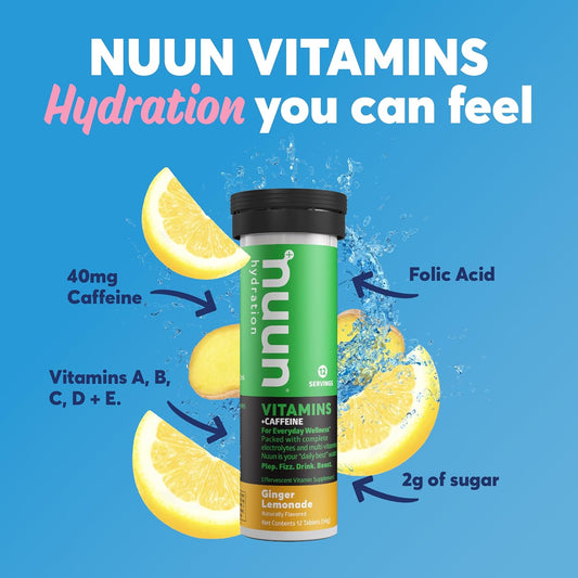 Nuun Hydration Ginger Lemonade Electrolyte Tablets with Caffeine - 96 Servings, Vegan, Non-GMO, Essential Electrolytes + Vitamins A, B6, C, D, E