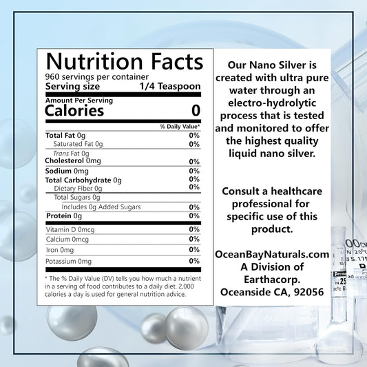 Ocean Bay Naturals Liquid Nano Silver 10ppm 32oz - Highly Absorbable Colloidal Silver Alternative in Amber PET Bottle