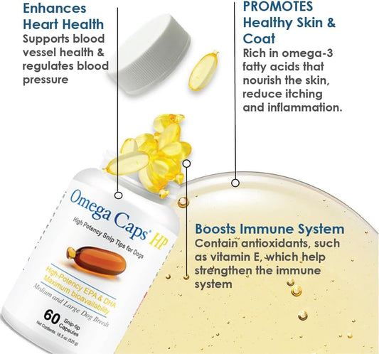 Omega-Caps High Potency Snip Tips for Medium to Large Breeds - 60 Capsules for Healthy Skin & Coat - Omega 3 for Joints & Immune Support - Vet Formulated & Easy to Dose