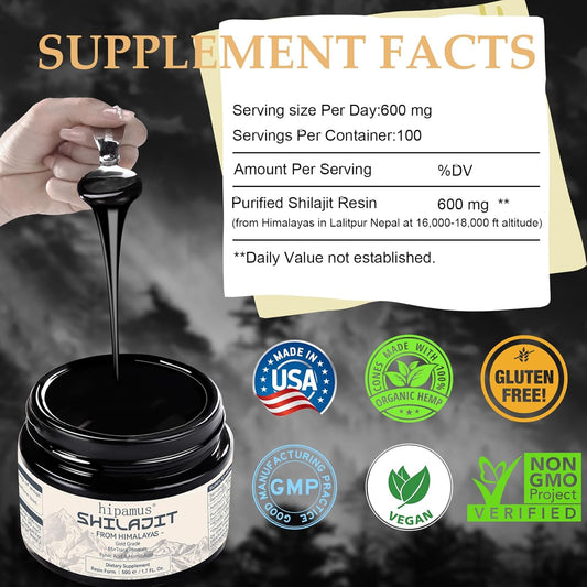 Organic 600mg Shilajit Resin - Pure Himalayan Supplement with Fulvic Acid - Energy & Immune Support - 50g Gold Grade