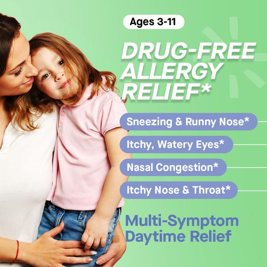 Organic Acai Berry Flavored Kids' Allergy Relief Chewables - Non-Drowsy Homeopathic Decongestant Medicine for Children - 60 Tablets