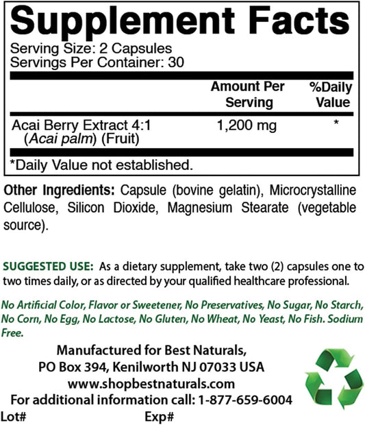 Organic Acai Berry Capsules - 600 mg (60 Count) - Premium Quality Dietary Supplement for Immune Support and Antioxidant Boost