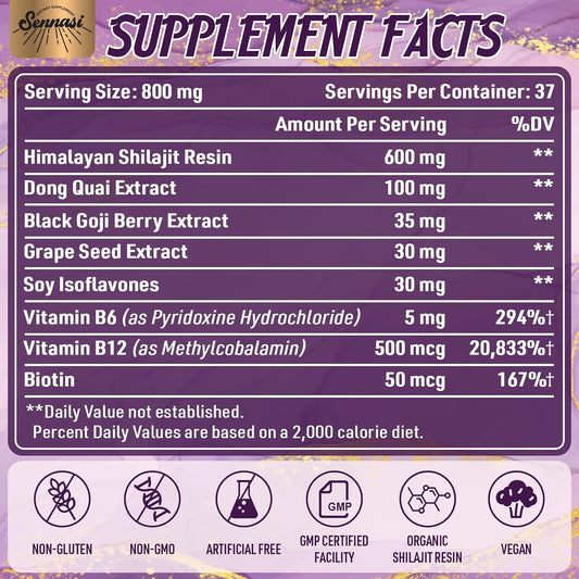 Organic 800mg Shilajit Resin Supplement with 85+ Trace Minerals - Maximum Potency Gold Grade for Women - Boost Energy & Immunity - 30g