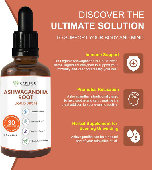 Organic Ashwagandha Liquid Drops - Pure Root Extract for Wellness | Non-GMO, Vegan, Gluten-Free | 30 Servings