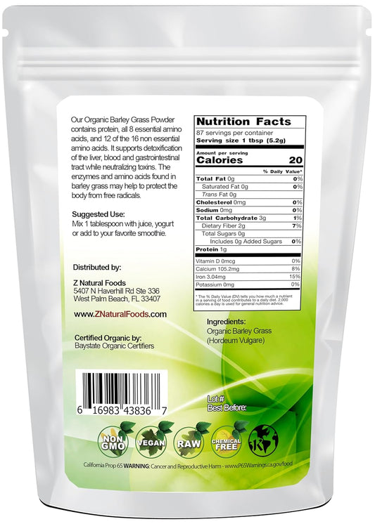 Organic Barley Grass Powder - Antioxidant-Rich Superfood for Energy Boost, Vegan & Gluten-Free - 1 Lb by Z Natural Foods