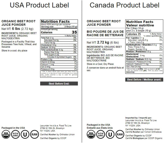 Organic Beet Root Juice Powder, 6lb - Non-GMO, Raw, Keto, Vegan, Bulk with Maltodextrin. Nitric Oxide Booster for Smoothies, Soup, Hummus.