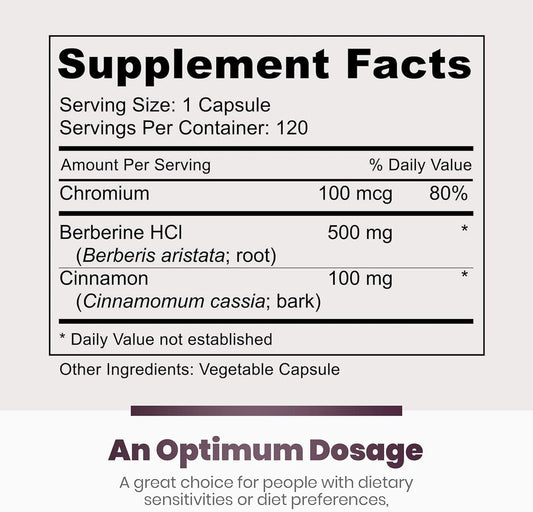 Organic Berberine HCl 500mg Capsules - 120 Count for Heart, Gut & Immune Health - With Chromium & Cinnamon for Added Support