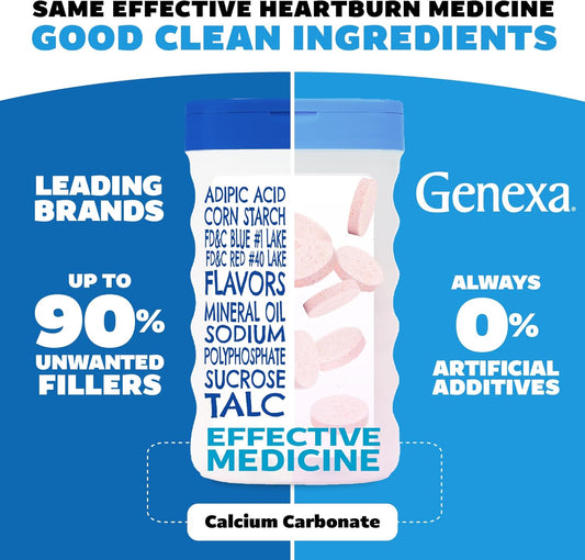 Organic Berry Flavored Genexa Antacid Chewable Tablets - Maximum Strength Relief for Heartburn, Acid Indigestion, & Upset Stomach - 216 Tablets (3 Pack)