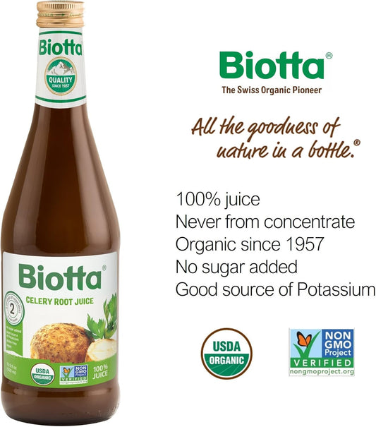 Organic Celery Root Juice - Kidney & Immune Support Superfood, High in Potassium - 100% Celery Juice (16.9 Fl Oz, Pk of 6)