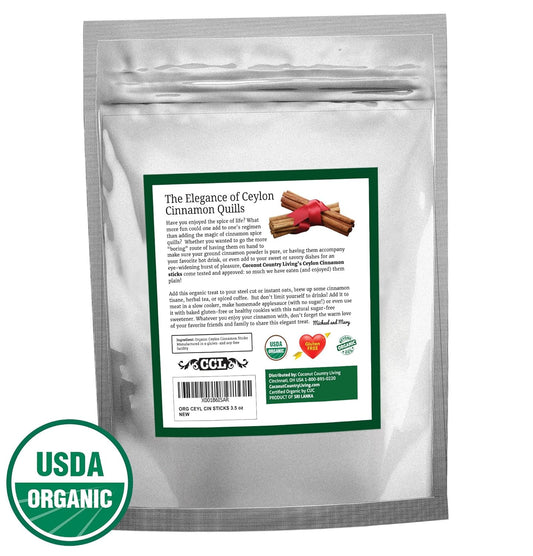 Organic Ceylon Cinnamon Sticks - 8 oz - Fair Trade Sourced Whole 3" Quills - Authentic Sweet Cinnamon for Tea and Baking - Gluten-Free, Soy-Free, Peanut Free - Non-GMO - Request Complimentary eBook
