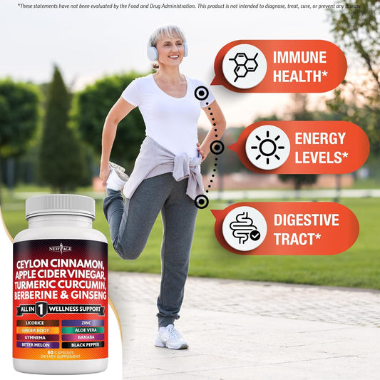 Organic Ceylon Cinnamon, Turmeric, Apple Cider Vinegar, Ginseng, Aloe Vera, Berberine, Banaba, Ginger Root Capsules - 180 Count