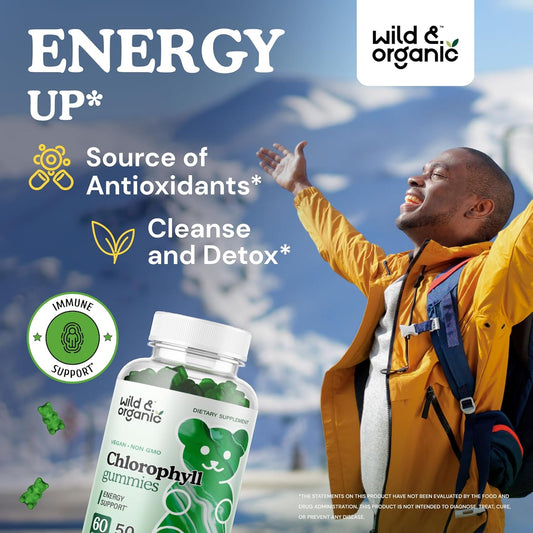 Organic Chlorophyll Gummies 50mg - Detox Cleanse Supplements with Sodium Copper Chlorophyllin - Internal Deodorant with Chlorophyll Powder - Vegan, Non-GMO - 60 Herbal Chews